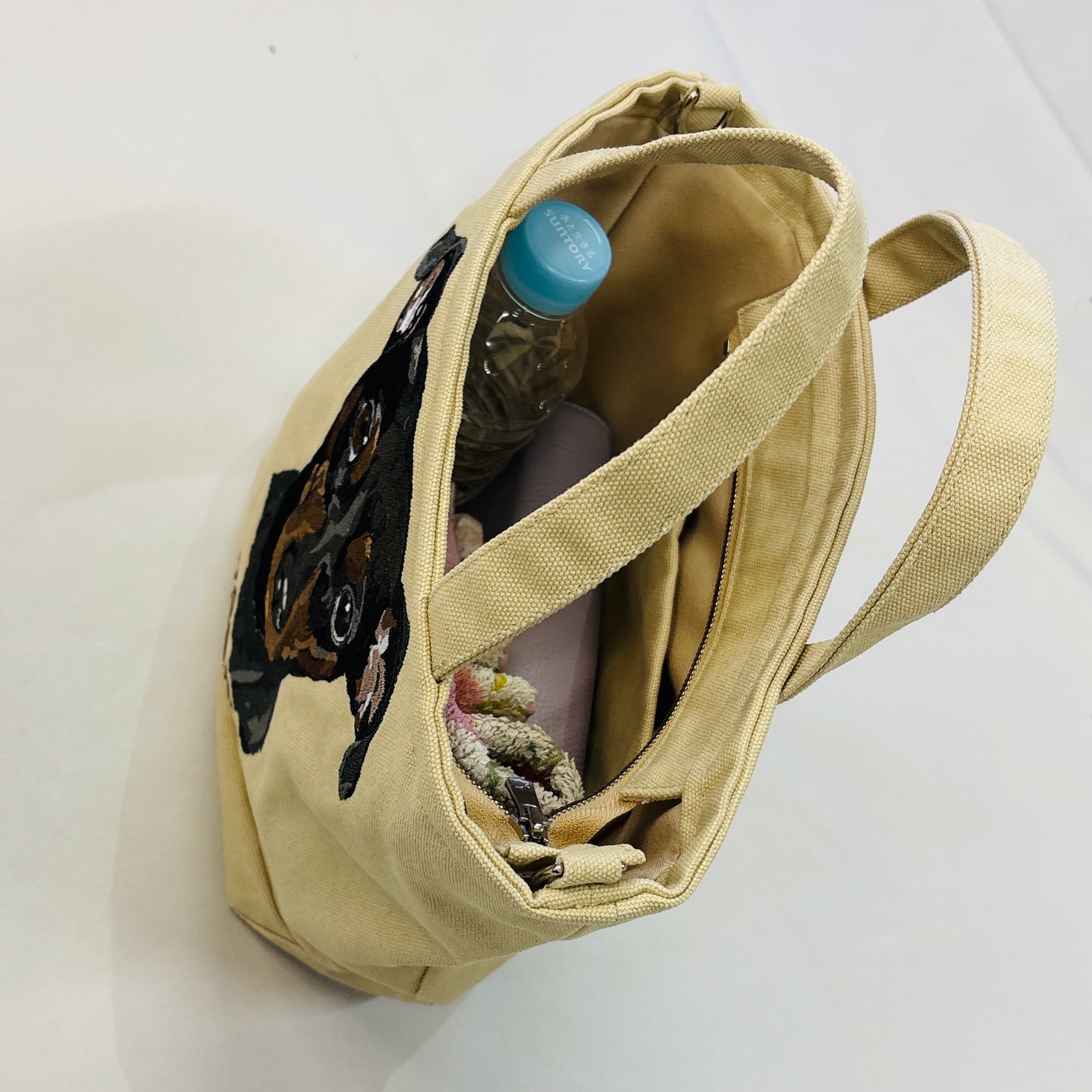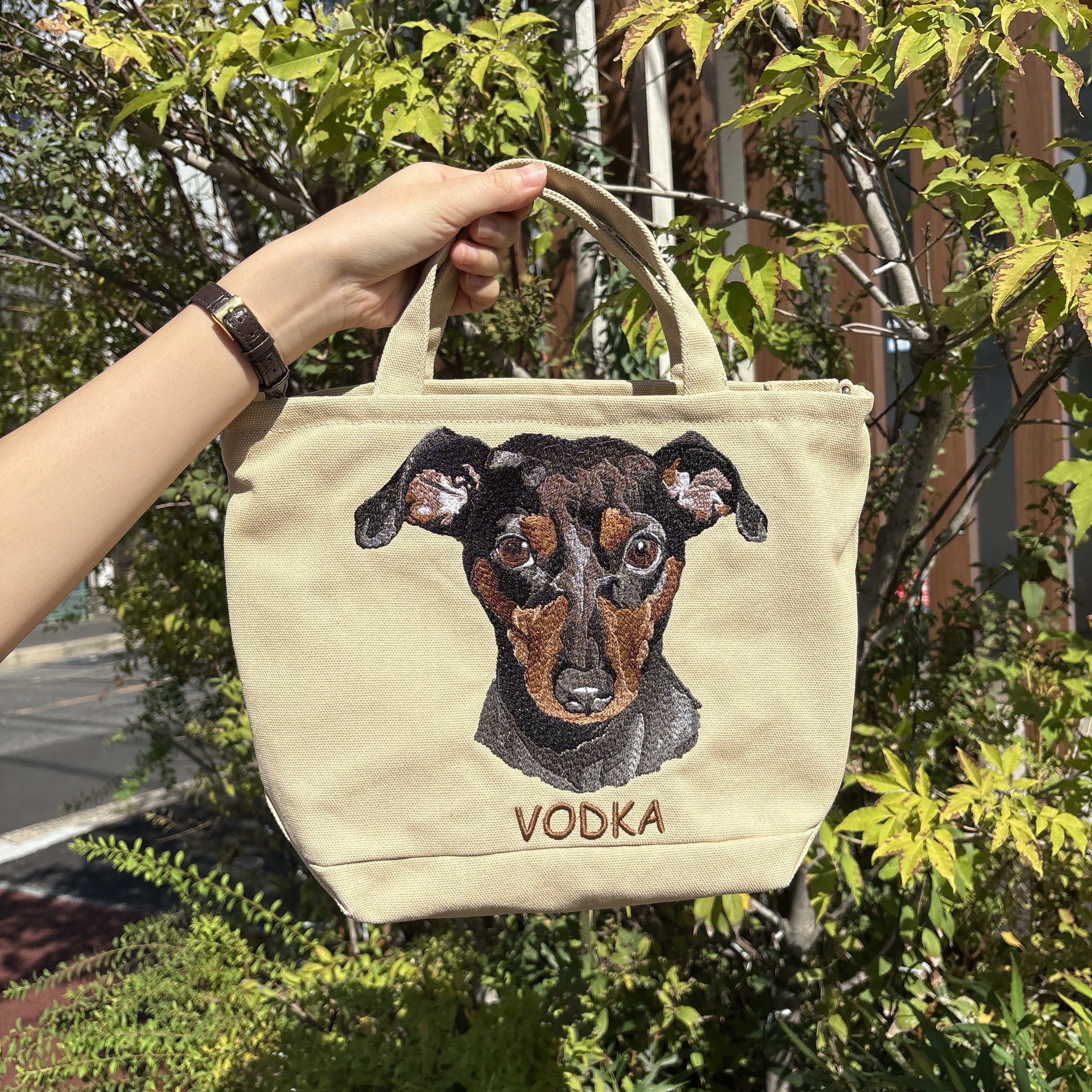 愛するペットの個性をそのまま刺繍で表現したお散歩バッグ。