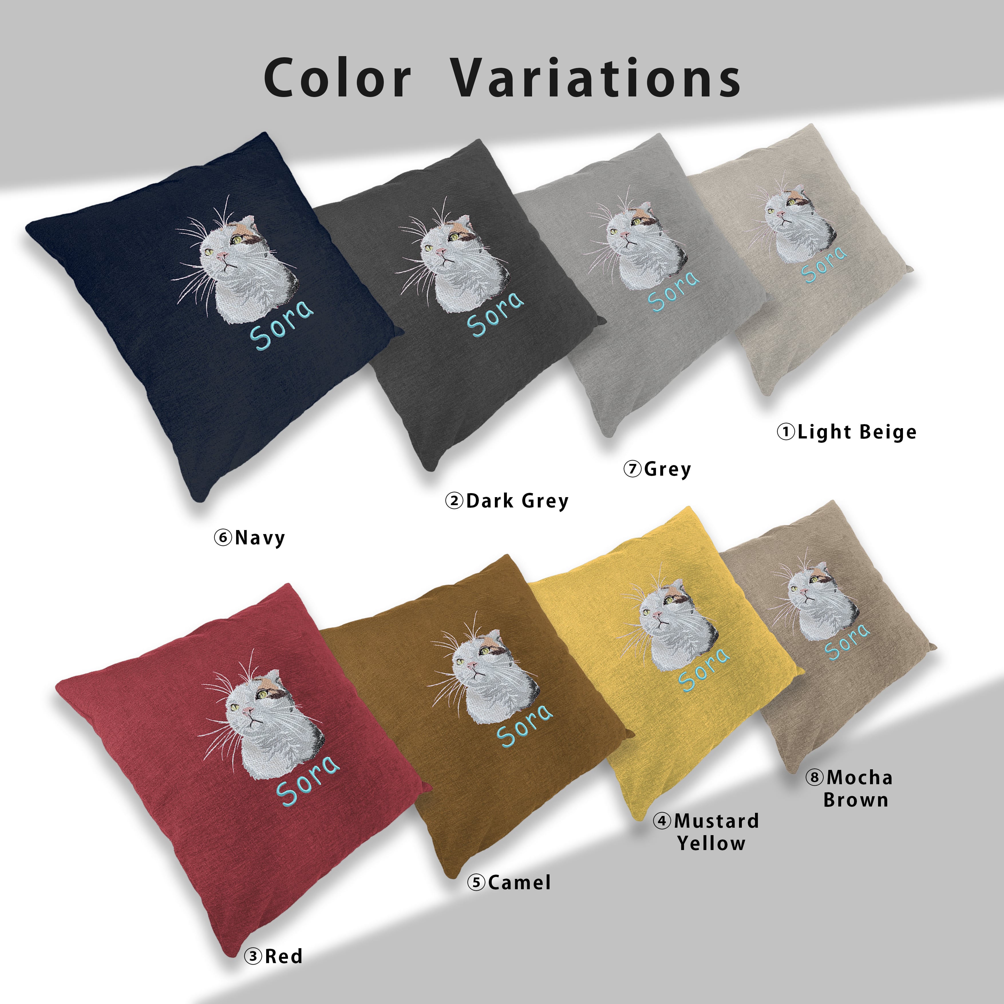 愛するペットの個性をそのまま刺繍で表現したクッションです。